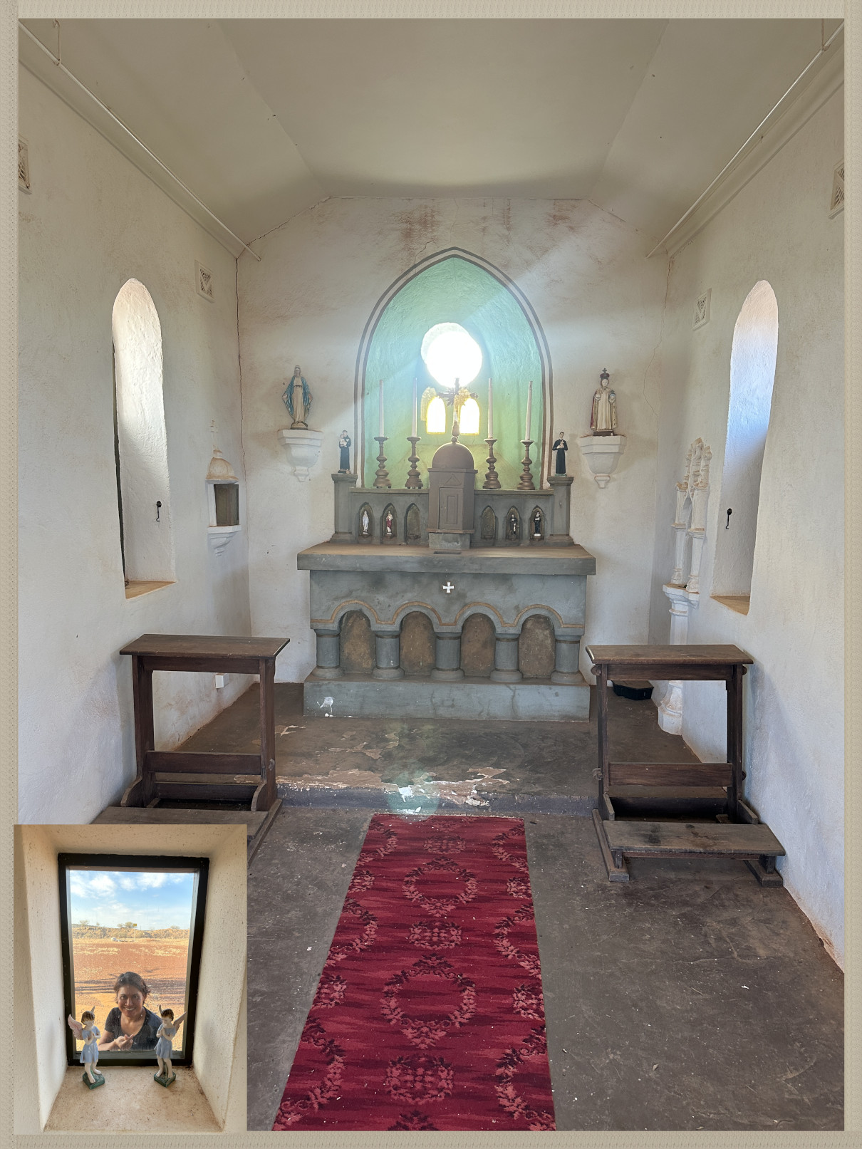 Stopping briefly at Mullewa, we stretched our legs around Our Lady of Mount Carmel’s church, perhaps Monsignor John Hawes’ finest creation.